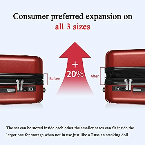 All 3 suitcases are also expandable , so there is no need to worry about your personal belongings not fit. Even if it is full,it is still effortless when pushing up,the 4 double spinner wheels can ensure that the suitcase slide forward smoothly even if an adult sits on it.
