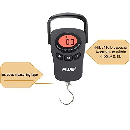 Details: American Weigh Scales is the leading manufacturer of high quality digital scales for fit any weighing application. The catalogue ranges from have floor scales to gram scales, pocket scales, kitchen scales, diet, bathroom scales, and many more. American Weigh Scales are state of the art at the most affordable prices. The American Weigh Scale Way is to understand shopper needs as a customer and client to help not only your wallet but to better your life. We make it our mission to exceed expectations in quality, service, design and function and keep consumers covered with a 10 year warranty. Rugged Die-Cast Metal Construction, Large LCD Display, and Bult-in Tape Measue make for a perfect outdoors friendly product. Great for Fishing, setting archery configurations, or helping with grain and farm measurment, all in one light and durable scale.