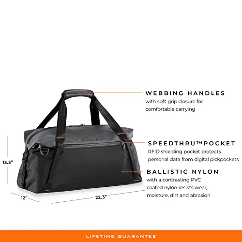 - Zip-around access to large main compartment that easily holds business and casual wear, odd-shaped items, Briggs & Riley packing cubes, travel accessories, toiletries and more