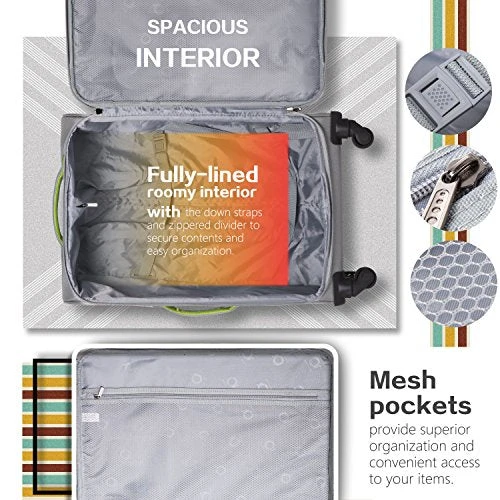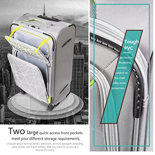 Designed to provide travelers comfort, functionality, reliability, and peace of mind, this 3 piece suitcase set features one 28inch suitcase for consignment, one 24inch suitcase for checking in and one 20inch suitcase suitable for carrying onto the plane. Constructed with lightweight 1680D oxford cloth material, this luggage is durable, flexible and can absorb impact when under stress. Quiet airplane spinner wheels and an adjustable 3-level telescoping handle allow you to quickly maneuver in tight spaces and provide effortless movement. Make packing clothes easy with the interior fully lined with multi-use organizational pockets.