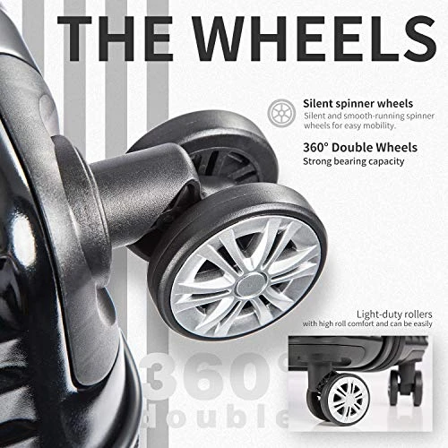 - Quiet airplane spinner wheels and an adjustable 3-level 100%pure aluminum telescoping handle allow you to quickly maneuver in tight spaces and it’s sturdier than most of the telescoping handle on the market. The unique shaped multi-directional 360°silent wheels will not make any noise when being rotated and it’s more durable in structure.