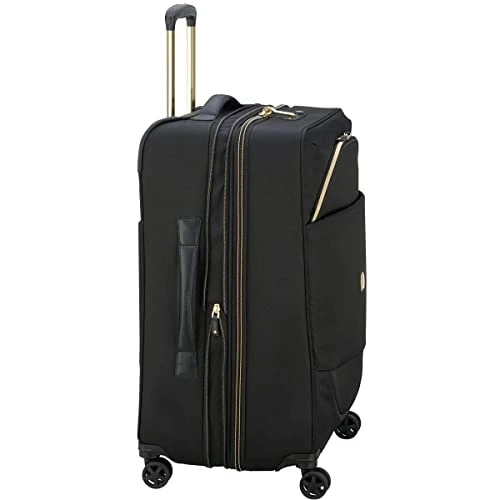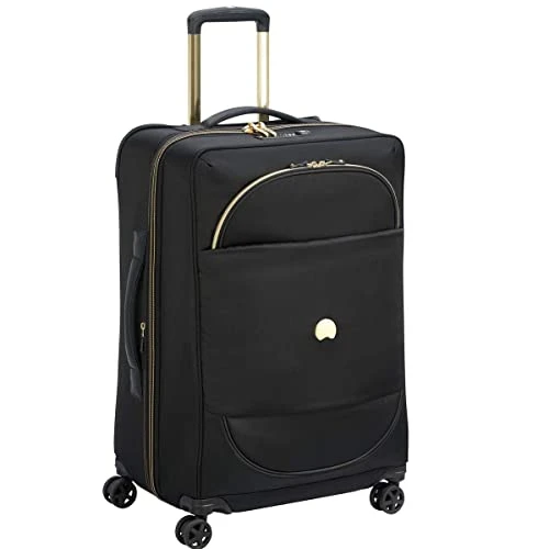 Details: Elegant, functional and lightweight, the Montrouge collection will make fashion forward travelers feel and look fabulous on the go! The gold metal accents, vegan-leather trim and stylish interior print bring the perfect touches to this feminine collection. This spinner upright features a unique split book opening with two full size compartments for optimized organization, as well as removable and washable lining (delicate cycle) for added convenience. It is also equipped with an integrated TSA-accepted lock, and DELSEY patented zip SECURITECH technology that makes it 3 times stronger than a standard zipper. Silent-running, double spinner wheels offer superior maneuverability for travelers rushing through airports. Established in 1946, Delsey has used its flair to marry tradition with innovation, elegance with modernity and design with practicality. We design tomorrow’s luggage with inspiration from many places: travelers and their journeys, societal changes and the evolving environment. As a result our luggage keeps getting lighter, better fitted and more environmentally friendly. Enabling our customers to travel elegantly and limiting any negative impact on the environment is our raison dโรชtre.