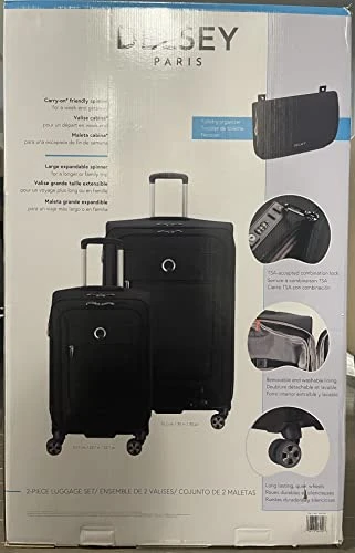 Details: This durable and lightweight luggage set will meet your needs, no matter where your travels take you. Both bags are equipped with DELSEY dual-density spinner wheels for a silent and smooth ride. The carry-on size includes a removable bi-fold organizer to store your toiletries, makeup, or jewelry. The larger piece is expandable and features a TSA-accepted lock as well DELSEY patented SECURITECH zip that is 3 times more resistant than a standard zip. Both bags include a removable and washable lining so you can keep the inside for your bags fresh after each getaway. – Closure Type: Zipper. – Carry-on and Large Expandable Bag Nest Inside One Another for Easy Storage. – Long-Lasting and Quiet Wheels for Superior Mobility. – Removable Bi-Fold Toiletry Organizer in Carry-on Spinner. – TSA-Accepted Lock and Patented SECURITECH Zip on Large Spinner. – Removable and Washable Lining. – Interior includes tie-down straps and two mesh pockets. – Removable and washable lining to keep the inside of your luggage fresh: un-zip lining, machine-wash on delicate cycle, and zip it back up. – Bags nest inside one another for easy storage. Dimensions: – Carry-on Spinner Dimensions (L ร W ร H/D): 22.7 in. ร 14.2 in. ร 9.5 in. Weight: 6.6 lb. – Large Spinner Dimensions (L ร W ร H/D): 30 in. ร 19.4 in. ร 11.7 in. Weight: 9 lb.