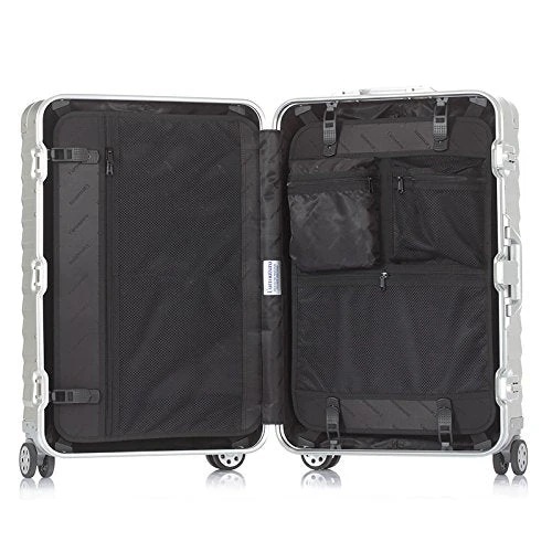 Details: Travel like a celebrity with the new Enkloze KLASIK Aluminum Suitcase and Carry On. Made of 100% aluminum alloy with a glossy surface and classic look. Combined with eight (8) ultra quite dual caster Peroma (German) wheels for 360 degree mobility, interior dividers, automatic folding handles, and dual TSA combination locks. Simplicity, security, and durability never looked better.