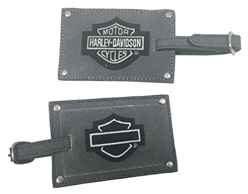 Details: Harley-Davidson Bar & Shield Belted Luggage Tags, 99301-GRAY. Set of 2 Luggage tags. Features a leather belted strap for extra strength. Privacy flap over the card holder. Each tag measures 4” x 2.5”.