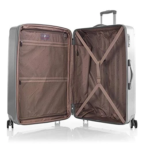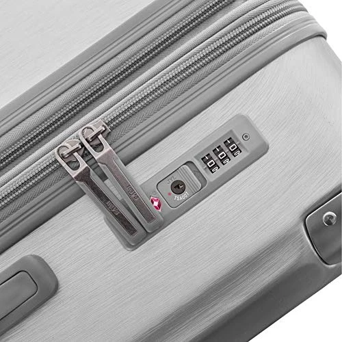 Details: Made of a lightweight polycarbonate composite with a brushed metal texture Protective, colour-matching metal corner guards Features a fully-lined interior with zippered divider, buckled compression straps and zippered pockets Flush mounted built-in TSA combination lock Zipper-released expansion system allows for an extra 20% in packing capacity Gel-cushioned top and side handles Lightweight colour-matching aluminum push-button telescopic handle system with multi-stage locking heights 360Β° dual spinner wheels allow for effortless motion in different terrains