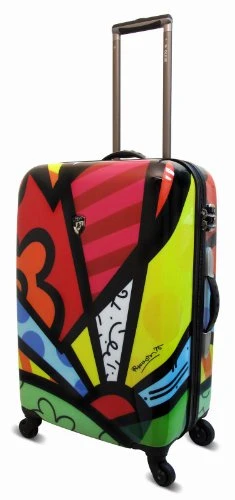 Details: BRITTO A NEW DAY 26″ SPINNER CASE The Britto Collection shell is made of a Polycarbonate Composite, and is protected by a layer of clear coat paint that gives it a high gloss luster. – Modern aluminum telescopic handle system, with push-down locking for easy, single-hand use, and cushioned TPR grip for comfort. – “Smart Wheels” are larger in the rear for greater control and smooth movement. – Britto Collection has a fully lined interior customized to compliment the shell art, clear-view multi-use organizational pocket for ease of packing that also doubles as a divider, keeping your items secured. – Built in Travel Sentry TSA accepted 3-digit lock allows baggage screeners to open your luggage for inspection, and relock for your security. Romero Britto is one of the premier artists of our times: A modern day pop culture phenomenon. Britto has created contemporary masterpieces with his vibrant colors, bold patterns and continuous message of hope. “An art that is too important not to share”, says Britto, “One that elevates the soul and nourishes the heart.” – 7 year Worldwide “Better Life” Warranty