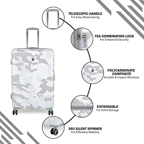 Details: The Heys White Camo 30″ Hard White Luggage Must Be The Next Addition To Your Luggage Collection. An Eye-Grabbing Innovative Beautiful Printed Texture Finishing Sets The Tone For Every Trip You Take. Constructed Of Polycarbonate Composite The White Camo Range Provides Strength, Lightweight And Durability To Give Your Belongings The Best In Protection With Style. Sitting Pretty On 4 Dual Multi-Directionalspinners, This Hardside Puts No Weight On Your Arm And Opens Up To A Fully-Lined Interior With A Zippered Compression Panel And Cross Straps To Keep Your Clothes In Order. Choose The One That Reflects Your Personality.Strolling Has Been Made Much Easier. Now, You Can Easily Take This Bag Wherever You Go.Throw It Around. Bash It On The Floor.