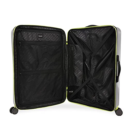 Details: Zip through the terminal and to your destination with this hard side, spinner luggage from Hurley. Made of durable super abs hardshell technology, you’ll be at ease knowing your clothing and accessories will be safe. This luggage features push button trolley handle, is expandable which offers 25% additional capacity, top, side and bottom carrying handles for easy lifting, multiple interior compartments and interior mesh pockets and tie down straps.