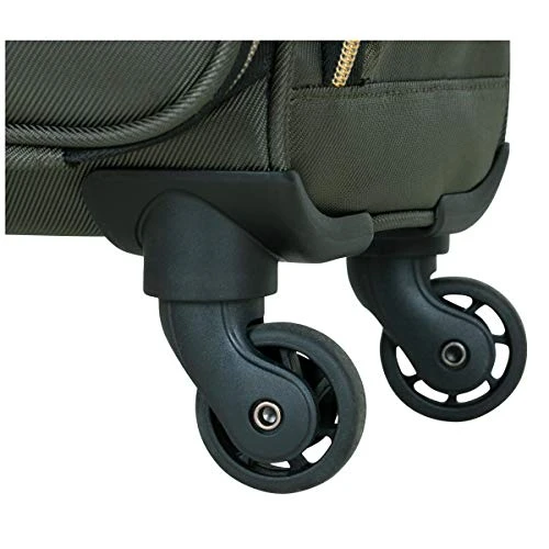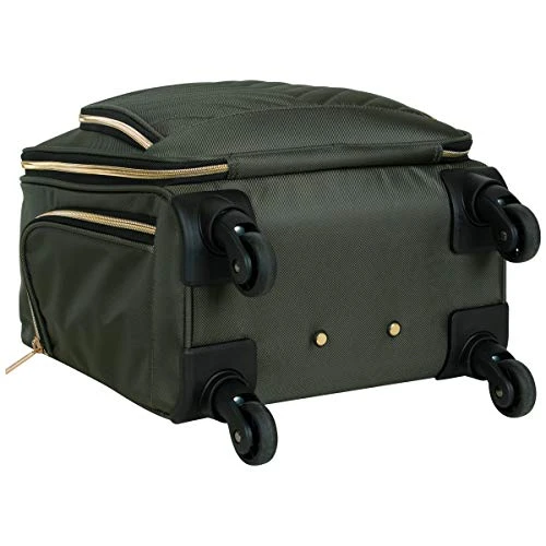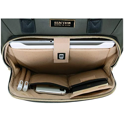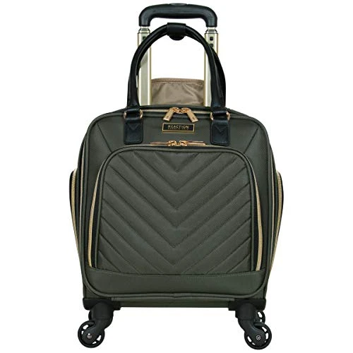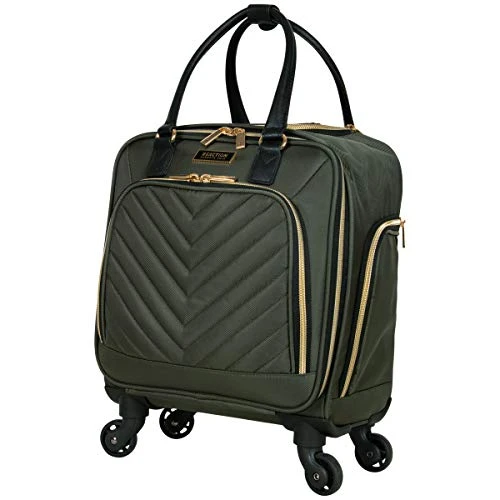 Details: Lighten your load by packing your essentials in this polyester twill chevron-quilted 4-wheel spinner underseater from designer Kenneth Cole, great for a weekend getaway or your daily commute. The bagโs lightweight construction helps you meet airline weight restrictions, avoiding unnecessary airport fees, while its 4-wheel spinners allow for effortless 360ยฐ navigation, getting you where youโre going faster. With its durable, polyester twill, chevron-quilted exterior and tear-resistant, fully lined interior take comfort in knowing that your belongings are stored safely inside. The bagโs front compartment interior includes a padded tablet pocket and organizer pockets to store smaller items, while the side exterior features two zippered pockets to hold a water bottle or other smaller items. The main compartment consists of a zippered pocket, two shoe pockets, and garment restraints and is just the right size for a short business trip or a weekend away. The bag features a retractable trolley handle extends to be 41โ tall with a locking push-button mechanism, as well as a rear exterior trolley tunnel to fit over most luggage upright handles, for hands-free carrying. Additional top handles allow for comfortable and easy lifting. Meets most U. S. based airline carry-on size requirements and fits into most airline overhead bin compartments. โ Overall Dimensions: 17. 0โ H x 13. 0โ L x 9. 0โ D (includes wheels). โ Weight: 5. 6 lbs. โ Backed by a manufacturer 10-year limited . โ