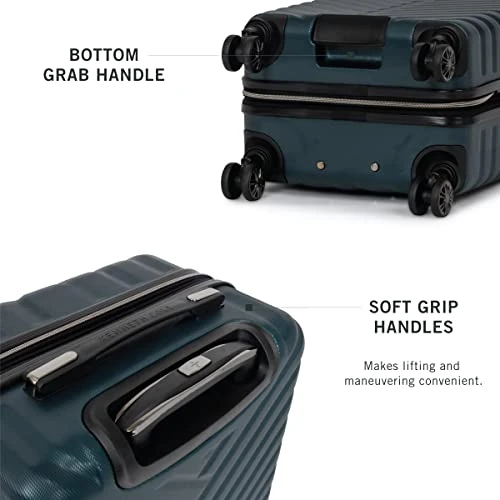Details: With its chic chevron pattern, the Madison Square luggage collection is fashion-forward and functional, ready to take off at a moment’s notice with all your valuable belongings safely stored inside. The durable, textured ABS exterior and fully lined, tear-resistant interior ensure that your things are protected, and the luggage’s expansion feature even allows the bag to expand an additional 2.0 inches for greater carrying capacity. Smooth, 8-wheel spinners provide effortless 360-degree navigation, allowing you to get to where you’re going faster, while its lightweight construction helps you meet airline weight restrictions, avoiding unnecessary airport fees. The main compartment interior features a hanging side zipper pocket, and a divider panel with a zippered mesh pocket and clips to hold belongings in place. The under-the-lid section features a divider panel consisting of shoe pockets and a zippered mesh pocket for smaller items. A retractable trolley handle retracts to be 41 inches tall with a locking push button mechanism, while additional flexible top and bottom grab handles allow for easier lifting. The bag’s premium, self-repairing zippers are designed for long-lasting use, and side handle and molded side feet on the 28 inches allow luggage to stand upright on its side. The 20″ Carry-on size was designed to meet most yours. Based & international airline carry-on size requirements and to fit into most airline overhead bin compartments. Backed by a manufacturer lifetime limited guarantee against workmanship and defects. ★ 20” Carry On Luggage Overall Dimensions: 22” H” x 14” L x 9”-11” D (includes wheels). ★ 20” Carry-On Suitcase Internal Dimensions: 20” H x 14” L x 9”-11” D. ★ 20” Luggage Weight: 6.5 lbs. ★ This Kenneth Cole Reaction Madison Square 20″ chevron expandable spinner carry on travel suitcase is perfect for travelers whom value both style and function.