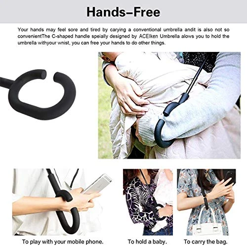 - Travel Umbrella Feature: The ergonomic C-shaped handle-the mechanism of our weatherproof umbrella is upside down, when you open the car door or enter the lobby, answer the phone, handle the food bag, the baby can even comfortably hold the child’s hand Walk handsfree. The C-shaped grip allows you to slide on your forearm or wrist, and you can close it from the inside out without dripping after heavy rain. It can prevents the car or floor from getting wet, thus keeping it dry and clean.