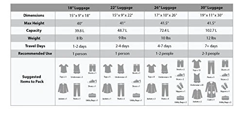 Details: This 4 pc set is made of heavy denier polyester. Multi directional spinner wheels rotate 360 degrees for easy maneuverability. This luggage allows you to pack more while avoiding the excess weight surcharges imposed by most airlines. Multi-directional spinner wheels for easy maneuverability Modern internal aluminum telescoping handle with push button handle. Interior mesh and zip pocket and elastic pocket * 5 year * 20″x13″x8. 5″ (with wheels) weighs 8 lbs, 22″ x15. 5″x9″ (with wheels) weighs 9 lbs, 26″x17″x10″ weighs 10 lbs, 30″x19″x11″ weighs 12 lbs.