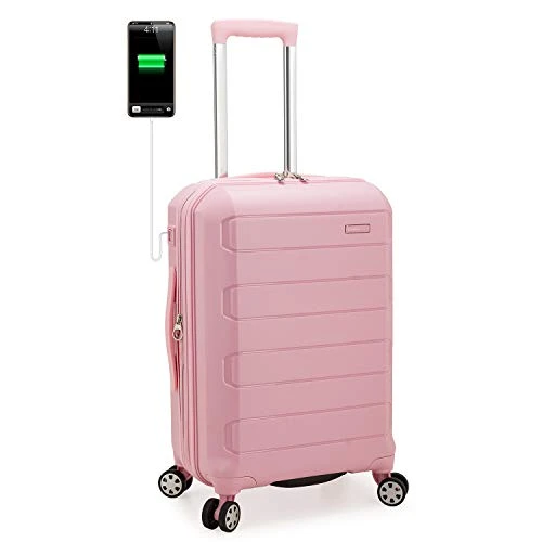 - 22โ Carry-On Spinner features a built-in USB port, Type C port, and an interior power bank compartment that provide quick connection to your portable electronic device for a quick charge. Power bank compartment dimensions: 9โ W x 3. 5โ L x 1โ D. Power bank is not included.