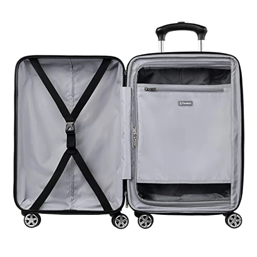Details: Adaptable, durable and lightweight, this hard case suitcase set is like having two spinners that do the work of three! The Travelpro® Runway® 2-piece Hardside Carry-on & Convertible Medium-Large Checked Expandable Spinner Set includes a hardside carryon suitcase and a size-adjustable check-in hardside spinner that converts from a medium- to a large-size check-in suitcase when fully expanded. Created to serve separate functions, both of these lightweight yet durable bags are constructed with a blend of PC/ABS for lasting resilience and finished with a textured surface that minimizes the appearance of scuffs or scratches. This 2 piece set offers lined interiors with an interior divider panel, accessory pocket, and adjustable hold down straps to keep packed contents organized and in place. Smooth-gliding, 8-wheel spinners rotate 360° to provide superior maneuverability led by height-adjustable handles with patented ProGrip™ design for hand comfort. Size and expansion is where these bags differ most. The carryon luggage with spinner wheels has been sizer bin tested to fit in the overhead bins of most major domestic airlines and offers a 2” expansion option that maximizes packing capacity. The Convertible Medium-Large Check in luggage is a medium-sized bag that features a unique 3” expansion option that increases the bag’s capacity and size to a large check-in spinner (62 linear inches). No need to buy a medium and a large expandable suitcase – or even decide which to bring. Whether you over pack before departure or over shop at your destination, you will never have to worry about running out of space with this 2 piece hardshell luggage set!