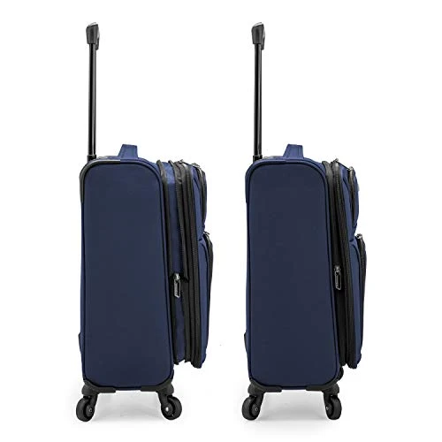 Details: Traveling is seamless with the Anzio Collection from U. S. Traveler. The Anzio Collection features 360-degree spinner wheels and a push-button multi-stage telescoping handle. The fully-lined interior features a mesh zipper pocket and tie-down straps to keep garments organized and in place. Each upright features two large exterior pockets and are expandable with a 2-inch gusset so you can easily organize all your travel essentials. Feel the sturdy telescoping handle system. It gives you hassle-free loading anywhere and peace of mind. This durable and spacious collection is the perfect purchase for your next trip! Durable micro-ballistic nylon ensures longevity. Multi-stage handle system adjusts to different heights. 2-inch expansion gusset offers extra packing space. 360-degree spinner wheels offer effortless mobility. Each upright rolls so there is no weight on your arm. Full interior lining and compression straps keep items in place. Large interior zippered mesh pocket provides easy organization. Two large exterior pockets come in handy when you have last minute items. 22” Expandable Softside Spinner: Exterior Dimensions: 22″ H x 14. 25″ W x10″ (+2″) D Exp. (6. 32 lbs. ) Interior Dimensions: 18. 5″ H x 13. 75″ W x 9. 5″ (+2″) D Exp.